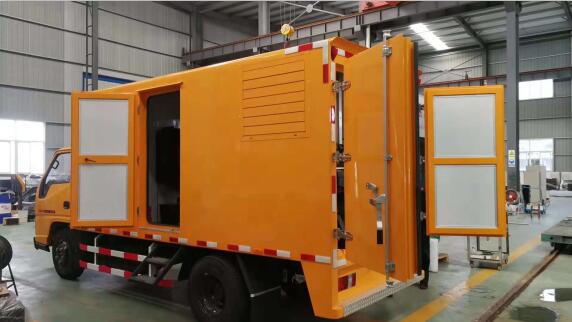 6.防音:電源車(chē)的車(chē)箱,車(chē)門(mén)等全部用雙層裝飾,并裝有吸音板消音;排氣管用保溫棉包裹,噪音最低可控制在75dB(A)以?xún)?